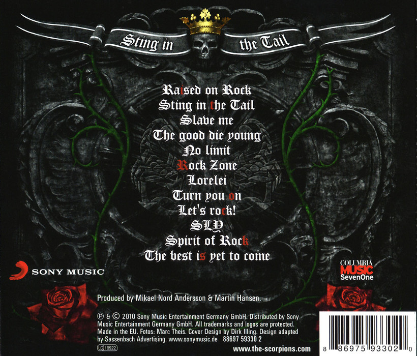 Sting in the Tail is the seventeenth studio album by the German heavy metal band Scorpions. It was released on March 19, 2010 in Europe (March 14 in Greece) and on March 23 in North America.