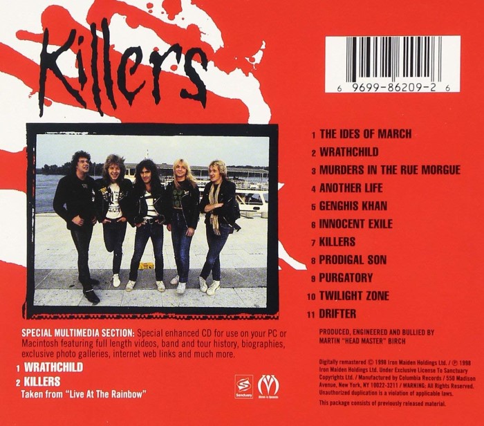 Killers is the second album by British heavy metal band Iron Maiden, released on 2 February 1981 in the UK, and 6 June 1981 in the U.S. The album was their first with guitarist Adrian Smith and their last with vocalist Paul Di'Anno, who was sacked after problems with his stage performance arose due to his alcohol and cocaine use. This was also the first Iron Maiden album made with veteran producer Martin Birch, who went on to produce their next eight albums before retiring after Fear of the Dark in 1992.