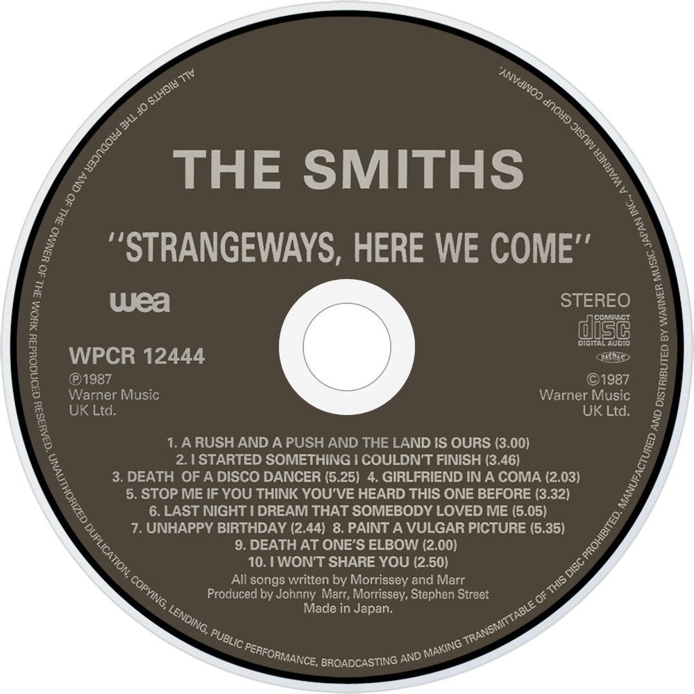 Strangeways, Here We Come is the fourth and final studio album by English rock band The Smiths, released in 1987, reaching No. 2 on the album chart and staying on the chart for 17 weeks. All of the songs on the album were composed by Johnny Marr, with lyrics written and sung by Morrissey. The album was certified gold by the Recording Industry Association of America on 19 September 1990.