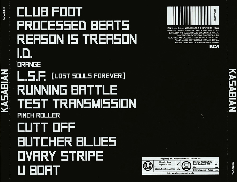 Kasabian is a microcosm of the whole Madchester scene in one album. All the key players are there, although perhaps most notably The Stone Roses and Happy Mondays. Additionally, Primal Scream have been cited as a major influence to the band, and it's blindingly obvious. Tracks like "Butcher Blues" will have you reminiscing fondly of the blissed out warmth of Screamadelica whilst "Reason is Treason" and "U Boat" are steeped heavily in the electronic violence of the Scream's more recent material.