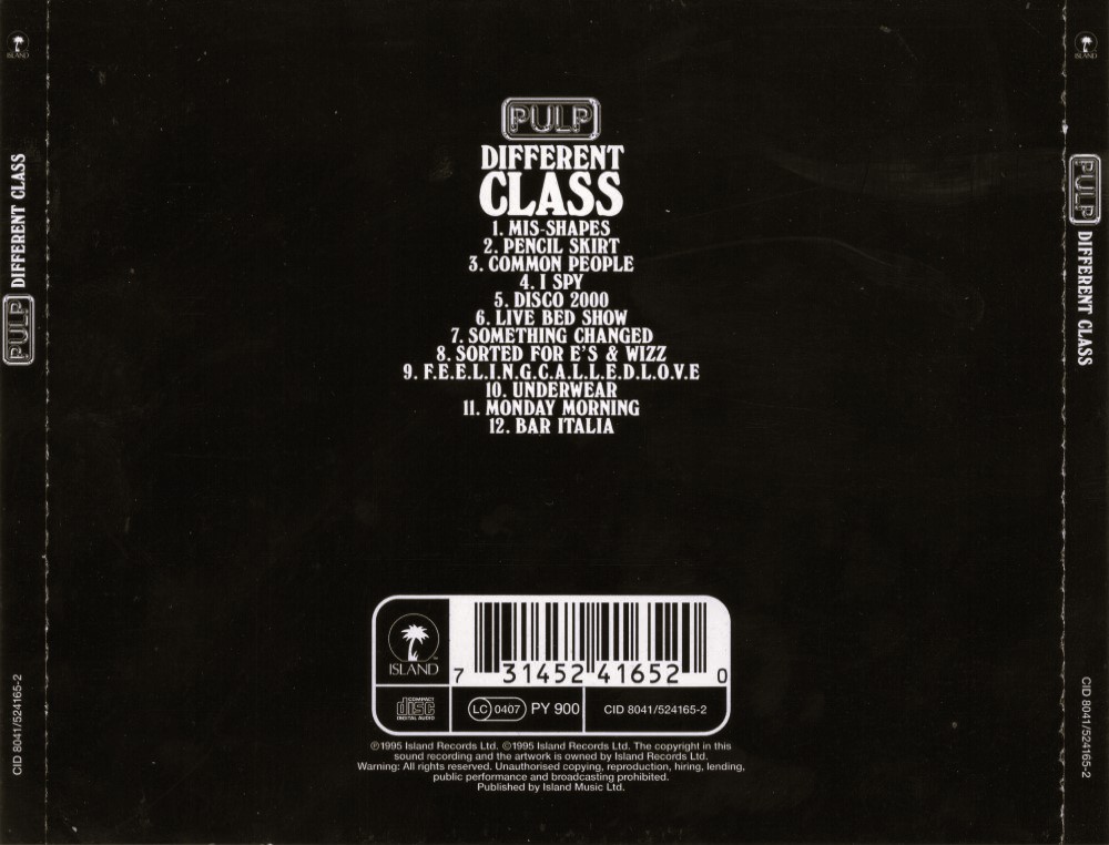Different Class is the fifth studio album by English Britpop band Pulp. It was released in 1995 at the height of Britpop, and led to the band being regarded as part of that movement. Two of the singles on the album - "Common People" (which reached number two in the UK singles chart) and "Disco 2000" (which reached number seven) - were especially notable, and helped propel Pulp to nationwide fame. A "deluxe edition" of Different Class was released on 11 September 2006. It contains a second disc of B-sides, demos and rarities.