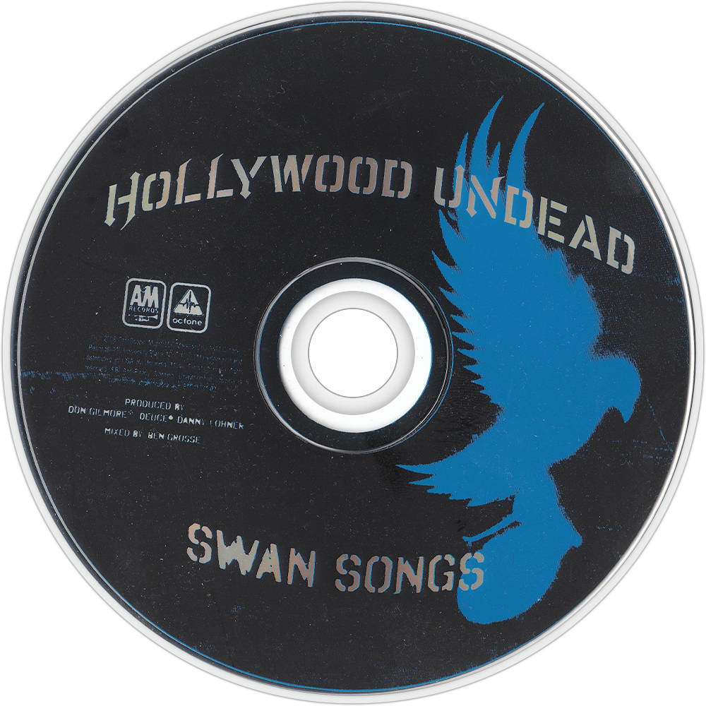 Swan Songs is the debut album by Hollywood Undead, released through Octone Records. The album was released on September 2, 2008. "Everywhere I Go" was the first single to be released, it was a web single and was available for download only on iTunes. The band released four music videos for four songs on the album, "No.5", "Undead", "Young", and "Everywhere I Go" When purchased through Amazon.com and at some other retailers, the album includes a bonus track and an option to unlock music videos. Swan Songs is the only studio album to feature vocalist Deuce, excluding the half-studio album Desperate Measures.