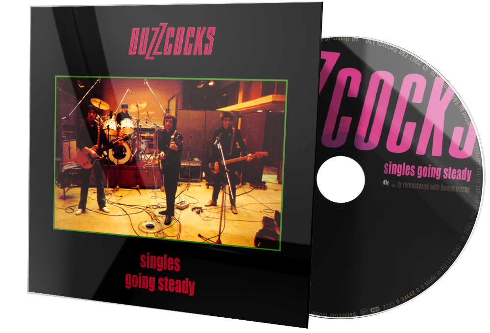 Album Description Available in: Singles Going Steady is a compilation album by English pop punk band Buzzcocks, released in September 1979 in the US and November 1981 in the UK through EMI Records. It features their United Kingdom single releases from 1977-1979, along with their corresponding B-sides.