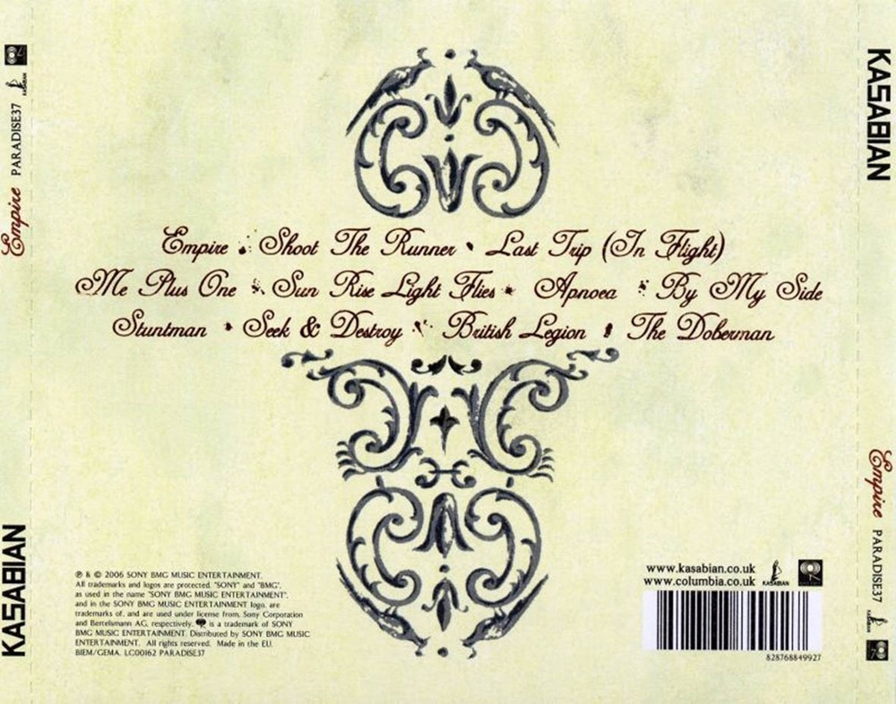 Empire is the second album by British indie rock band Kasabian, released in August 2006. The album went onto No. 1 in the UK Albums Chart upon its release and was preceded by the release of new single "Empire" on 24 July 2006.
