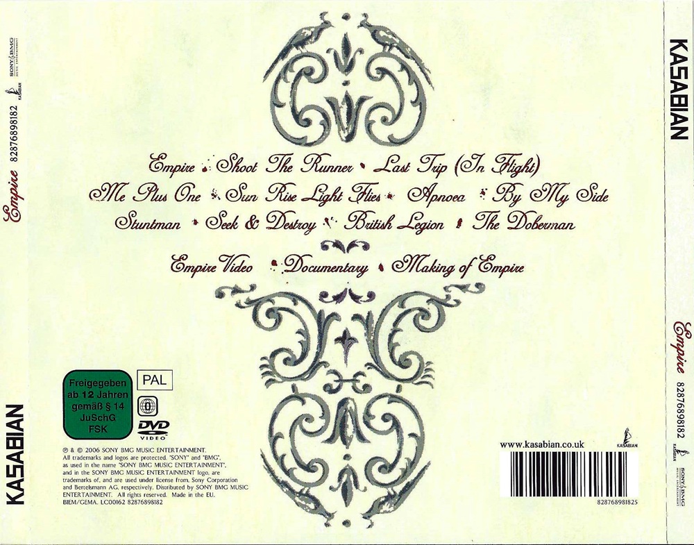 Empire is the second album by British indie rock band Kasabian, released in August 2006. The album went onto No. 1 in the UK Albums Chart upon its release and was preceded by the release of new single "Empire" on 24 July 2006.