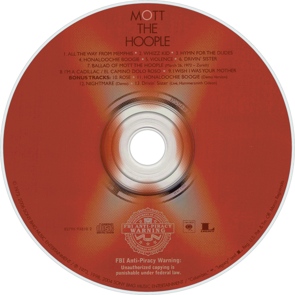 It was clear by the time Mott was released that Ian Hunter had become the dominant figure of the band. Aside from the lead track, the album includes introspective songs such as "Ballad Of Mott The Hoople", which exposes Mott’s near break-up, and the peculiar "I Wish I Was Your Mother", featuring multi-tracked mandolin, in which Hunter sings of his wish to see his love as a child. Hard rockers are given their due with "Whizz Kid", "Drivin’ Sister", "Violence" and "Honaloochie Boogie", the last-named being another UK single. A fine performance is delivered by Hunter in the almost religious "Hymn For The Dudes."