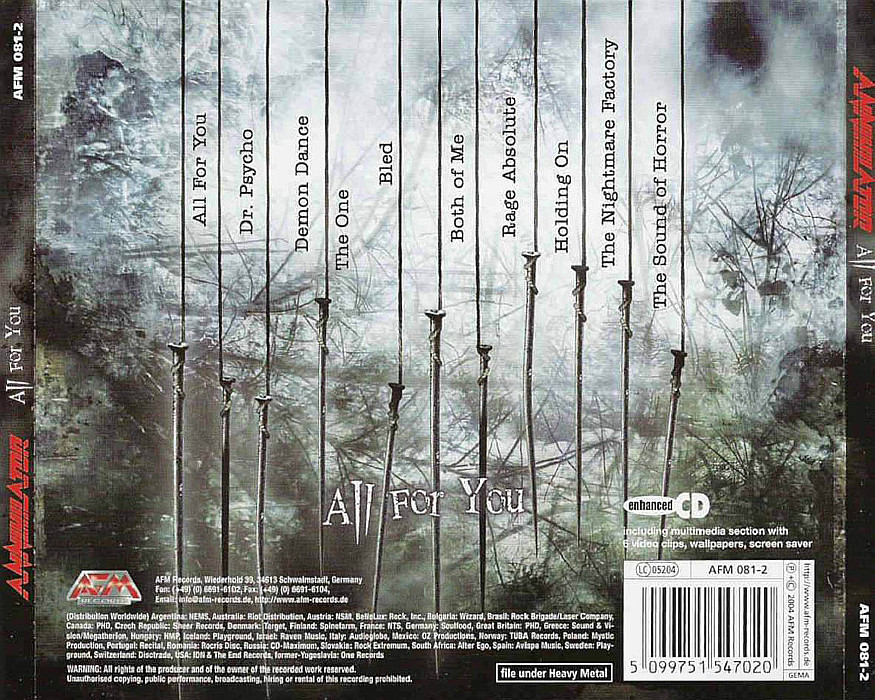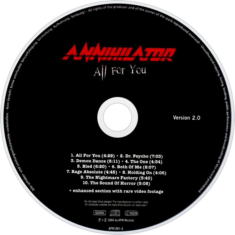 Album Description Available in: All for You is the tenth studio album by Canadian heavy metal band Annihilator, released on May 24, 2004 by AFM Records. It was the first album to feature Dave Padden on vocals. It was also the second to feature Mike Mangini on drums.