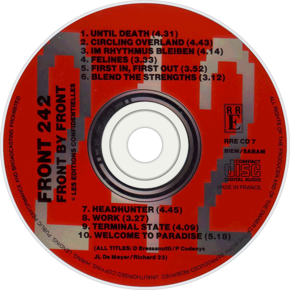 Front by Front is an album by Front 242, released in 1988, and has been labelled as "easily one of the greatest industrial albums ever made". The album was reissued in 1992 by Sony Music Entertainment. The song "Headhunter" became an industrial dancefloor hit, accompanied by a music video directed by Anton Corbijn, and has since been subject to over 20 remixes.