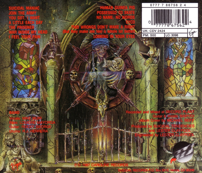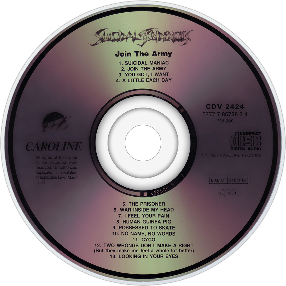 Join the Army is the second studio album by American crossover thrash band Suicidal Tendencies. It was released in 1987 and is one of the most well known albums for crossing over the genres of punk and thrash metal, known as crossover thrash, a genre that Suicidal Tendencies have been credited for creating. Join the Army is arguably one of Suicidal Tendencies' popular efforts, although it only reached No. 100 on the Billboard 200 chart. This was their first album with guitarist Rocky George and drummer R.J. Herrera, and their last recording with bassist Louiche Mayorga (although he did co-write songs on their next album How Will I Laugh Tomorrow When I Can't Even Smile Today). This is also the last album to feature the band playing hardcore punk.