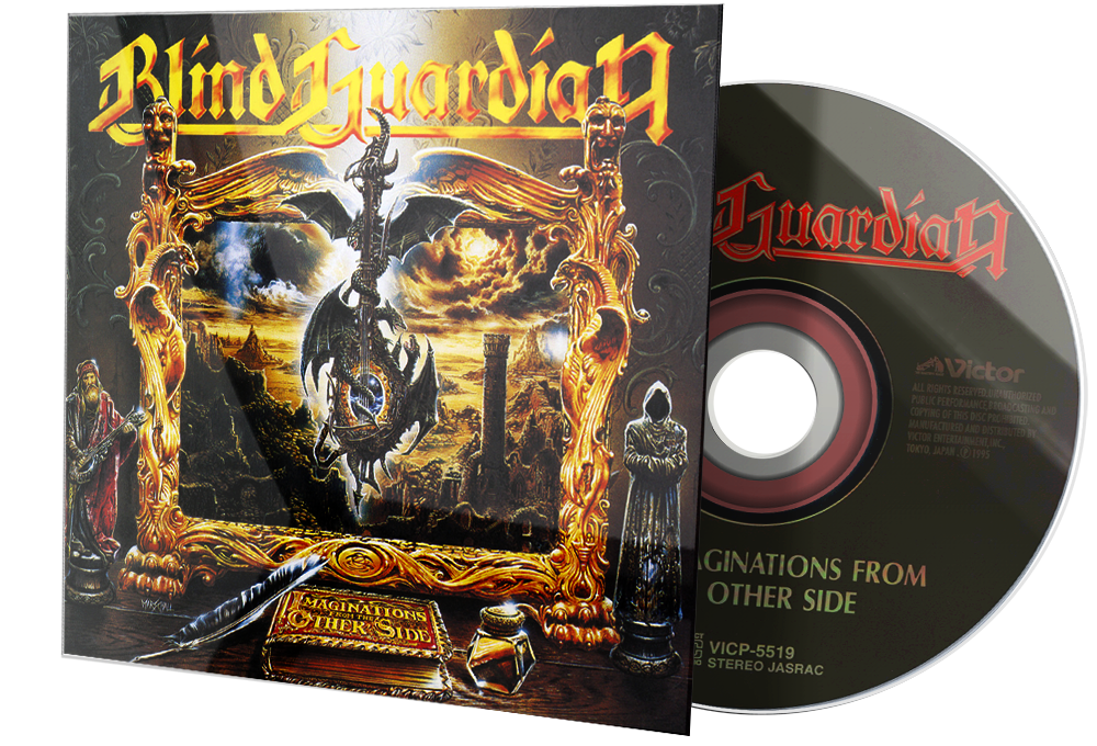Imaginations from the Other Side is the fifth studio album by Blind Guardian that was released in 1995. The atmosphere of this album is darker in comparison to their earlier works, such as Battalions of Fear, which had a relatively light tone. This album also marks the first since their debut in which Kai Hansen (Gamma Ray) did not guest on vocals or guitar, and the last album to feature vocalist-bassist Hansi Kürsch as bassist. It was also their first album to spawn off any singles, in form of "A Past and Future Secret" and "Bright Eyes". It was remastered and re-released on 15 June 2007, with bonus tracks and videos.