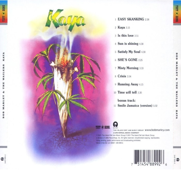 Kaya is a roots reggae album released by Bob Marley and the Wailers in 1978. The album consists of tracks recorded alongside those present on the Exodus album in 1977. The album has a very relaxed, laid back sound, lacking much of the militant quality of the Wailers lyrically and musically. They received criticism for 'going soft' as a result of the general sound of the album as well as the theme: songs primarily revolving around love, as well as marijuana. The album's release coincided with the One Love Peace Concert, heralding Marley's triumphant return to Jamaica from exodus in London. Many of the songs present on this album, as well as its sister album Exodus, are rerecorded versions of older tracks present on albums like African Herbsman. Well known songs from the album include "Is This Love" and "Satisfy My Soul". Kaya reached the top five in the UK album charts.
