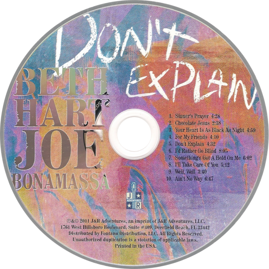 Fans of guitar master Joe Bonamassa will be delighted that 2011 was such a prolific year in his career. First came the fine, rootsy Dust Bowl, then 2, the second chapter in his Black Country Communion project's catalog. Don't Explain, a collection of soul, blues, and jazz-oriented covers in collaboration with vocal firebrand Beth Hart marks his third entry this year. The ten-song set of blues and soul is a logical extension of her vocal contribution to "No Love on the Street" from Dust Bowl. Opening is a thoroughly raucous contemporary blues reading of Ray Charles' "Sinner's Prayer," followed by a quirky version of Tom Waits' "Chocolate Jesus," and an unusual cover of contemporary jazz-pop singer/songwriter Melody Gardot's "You Heart Is as Black as Night." On this cut, a string orchestra adds a touch of perversity; it offers the impression of a femme fatale singing a Brecht-Weill number in a smoky cabaret in front of a moody string orchestra, buoyed by a brooding electric blues quintet. "For My Friends," a Bill Withers' tune, is a big, nasty, jagged blues number that keeps the funky groove intact. The title track, a number closely associated with Billie Holiday, falls flat. Hart tries too hard to employ Holiday's phrasing, the string orchestrations are overblown, and Bonamassa's crew is too reverent. This formula also mars the remake of Aretha Franklin's "Ain't No Way" that closes the set. Far better are readings of Etta James' signatories "I'd Rather Go Blind," and "Something's Got a Hold on Me." Hart's emotive, throaty delivery is perfectly suited to both songs, and she resists trying to ape James' phrasing. Since they follow one another directly, the musical difference between them also showcase's Hart's diverse abilities. The former is a soul burner, the latter a gospel blues. Bonamassa and band accent her every phrase with requisite rowdiness, sting, and grit. The pair's only vocal collaboration is a burning read of Delaney & Bonnie's "Well, Well." With Anton Fig's breaks and rim shots underscoring Arlan Scheirbaum's electric piano fills, Bonamassa's burning leads, the chunky, rhythmic foundation from guitarist Blondie Chaplin, and Carmine Rojas' bassline, Hart and the lead guitarist trade whip-smart call and response vocals with enough raw country-soul to bring the song to a new audience. While not a perfect recording, Don't Explain is a good one, whose strengths are numerous enough to warrant a second go round.