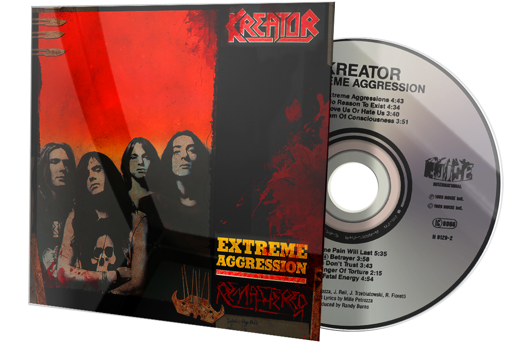 Extreme Aggression is the fourth studio album by German thrash metal band Kreator released in 1989. While the band had already gained a sizeable following in the US due to their 1988 tour with the crossover thrash band D.R.I., this album introduced many American fans to Kreator, primarily through heavy rotation of the "Betrayer" music video on MTV's Headbangers Ball, which was partly shot at the Acropolis in Athens, Greece. The beginning of the song "Love Us or Hate Us" was used in an early 1990s promo ad by the Los Angeles radio station KNAC. This was their first issued in the US by Epic Records. The album was also available on picture disc vinyl.