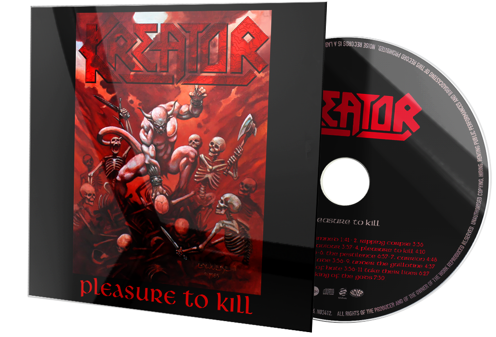 Pleasure to Kill is the second studio album by German thrash metal band Kreator, released in April 1986 by Noise Records. Pleasure to Kill is widely considered a landmark thrash metal classic, along with Master of Puppets by Metallica, Peace Sells... but Who's Buying? by Megadeth, Reign in Blood by Slayer, Eternal Devastation by Destruction and Darkness Descends by Dark Angel, all released in 1986. The album played a considerable role in the development of many extreme metal subgenres, and death metal bands such as Cannibal Corpse cite the album as an influence. The lyrical themes follow those found on their first album Endless Pain, containing descriptions of macabre scenes of death and horror. Just like that album and Terrible Certainty, Kreator were a three-piece band during the recording of Pleasure to Kill; on some early pressings, guitarist Michael Wulf, who was briefly a member of Kreator, was erroneously credited as a band member in the liner notes.