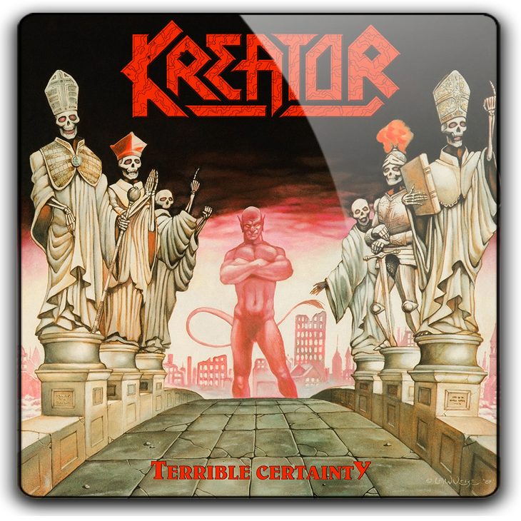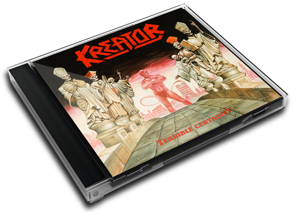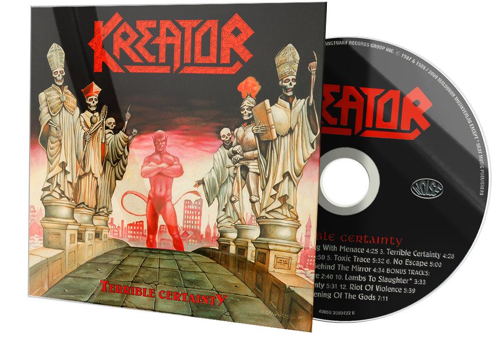 Terrible Certainty is the third studio album by German thrash metal band Kreator, released in 1987 through Noise Records. It was released on cd, cassette, black vinyl, and as a limited edition red vinyl. The remastered version of 2000 contains the tracks of the 1988 Out of the Dark... Into the Light EP as bonus tracks. Another remastered version was released on 9 June 2017.