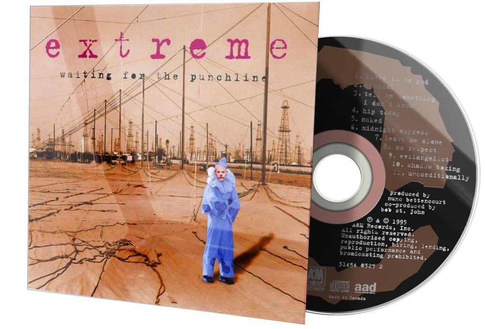 Waiting for the Punchline is Extreme's fourth album, which was released in 1995. It is known by fans as a distinctively raw sounding record - especially when compared to the big production of the two previous albums - with a significant influence from grunge and alternative rock, while still showcasing guitarist Nuno Bettencourt's talents. Due to its lyrics focused heavily on social matters (ranging from religion to fame) it is often cited as a concept album. It is also the only Extreme record to feature drummer Mike Mangini (on 3 tracks). After the album's tour, the band subsequently disbanded in 1996 when Bettencourt informed Extreme that he was leaving the band to pursue a solo career. After the breakup, singer Gary Cherone also joined Van Halen in the same year as their new singer, but left three years later.