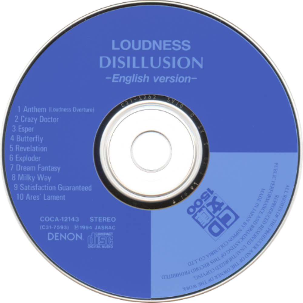 Disillusion (撃剣霊化, Gekken reika) is the fourth studio album by Japanese heavy metal band Loudness. It was recorded, mixed and mastered in London, England, in 1983 and released at the beginning of 1984. The sound engineer chosen for the recording sessions was the expert Julian Mendelsohn, who had previously worked with acts like Yes, Elton John, Jimmy Page and Bob Marley. The original Japanese version was licensed and released by Music for Nations in the UK and Roadrunner Records in Europe. Attention by major US labels for the band and the need to make their work accessible to Western audiences, prompted a new release of the album with vocal tracks sung in English on July 1, 1984. The English version opened the album with the instrumental "Anthem (Loudness Overture)" by Akira Takasaki, which was missing in the original Japanese release.