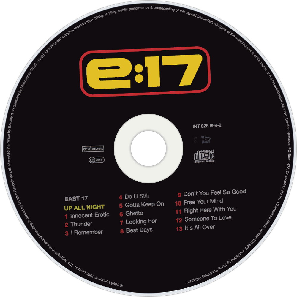 Up All Night is the third studio album by East 17 and the last to feature the group's entire original lineup. It was released on 1 October 1995. It is notable in that all members of the group made songwriting contributions to the album, although all three singles released were still penned by Tony Mortimer.