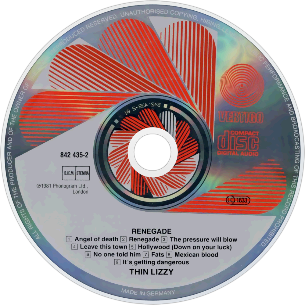 Renegade was the eleventh studio album by Irish band Thin Lizzy, released in 1981. Though not his first appearance, this was the first album in which keyboard player Darren Wharton was credited as a permanent member, becoming the fifth member of the line-up. As such, he made a contribution as a songwriter on the opening track "Angel of Death". However, even though he had officially joined the band, his picture was omitted from the album sleeve.