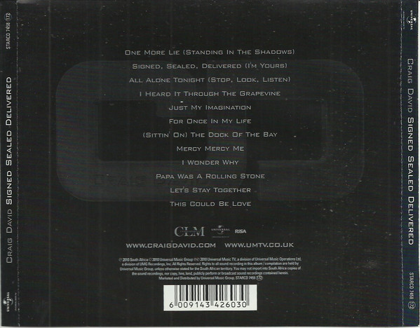 Signed Sealed Delivered is Craig David's fifth studio album and is his first album for Universal Records. It was released on 29 March 2010 and entered the UK Albums Chart at number 13. The album consists primarily of covers. Two of the album's tracks sample hits from the Motown era and give them a modern twist, as demonstrated with the first single from the album, "One More Lie (Standing in the Shadows)", whose chorus samples The Four Tops' 1967 Motown classic "Standing in the Shadows of Love". The second is "All Alone Tonight (Stop, Look, Listen)" which samples Diana Ross and Marvin Gaye's version of "Stop, Look, Listen (To Your Heart)". The only original song is the album's last track, "This Could Be Love". Craig David's first album with his new label, Universal, is a collection of Motown covers and songs with Motown samples, and is David's first album in three years. The Southampton-born singer covers Stevie Wonder, Otis Redding and Marvin Gaye amongst others, and gives these classic songs a modern twist. Signed, Sealed, Delivered includes the single "One More Lie (Standing In The Shadows)", an original song that samples The Four Tops' hit "Standing In The Shadows Of Love" in its chorus.