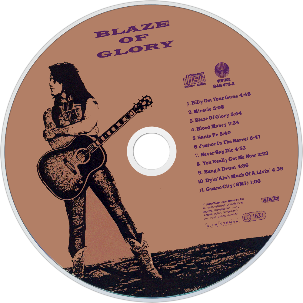 Blaze of Glory is Jon Bon Jovi's first solo album, released in 1990. It includes songs from and inspired by the movie Young Guns II. Emilio Estevez asked for Bon Jovi's "Wanted Dead or Alive" as the theme song for his upcoming Billy the Kid sequel, but Jon Bon Jovi ended up composing an all new theme song for the film's soundtrack instead. The album featured guests such as Elton John, Little Richard, and Jeff Beck. Blaze of Glory was awarded a Golden Globe. It also received Academy Award and Grammy nominations.