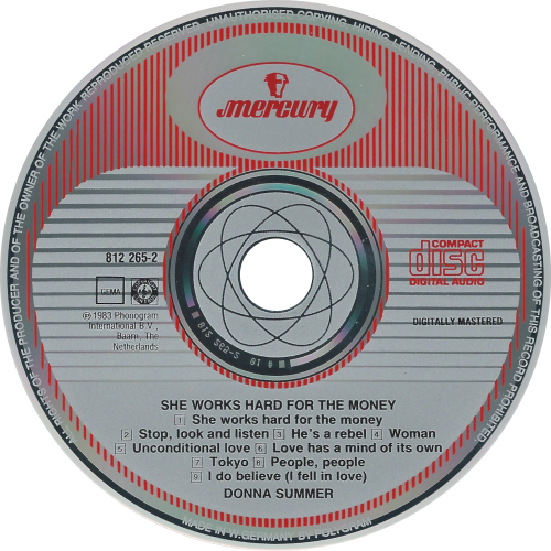 She Works Hard for the Money is the eleventh studio album by American singer Donna Summer, released on June 13, 1983, by Mercury Records. It was her most successful studio album of the decade, peaking at No. 9 on the Billboard 200 and its title track became one of the biggest hits of her career and her biggest hit of the decade, peaking at No. 3 on the Billboard Hot 100.