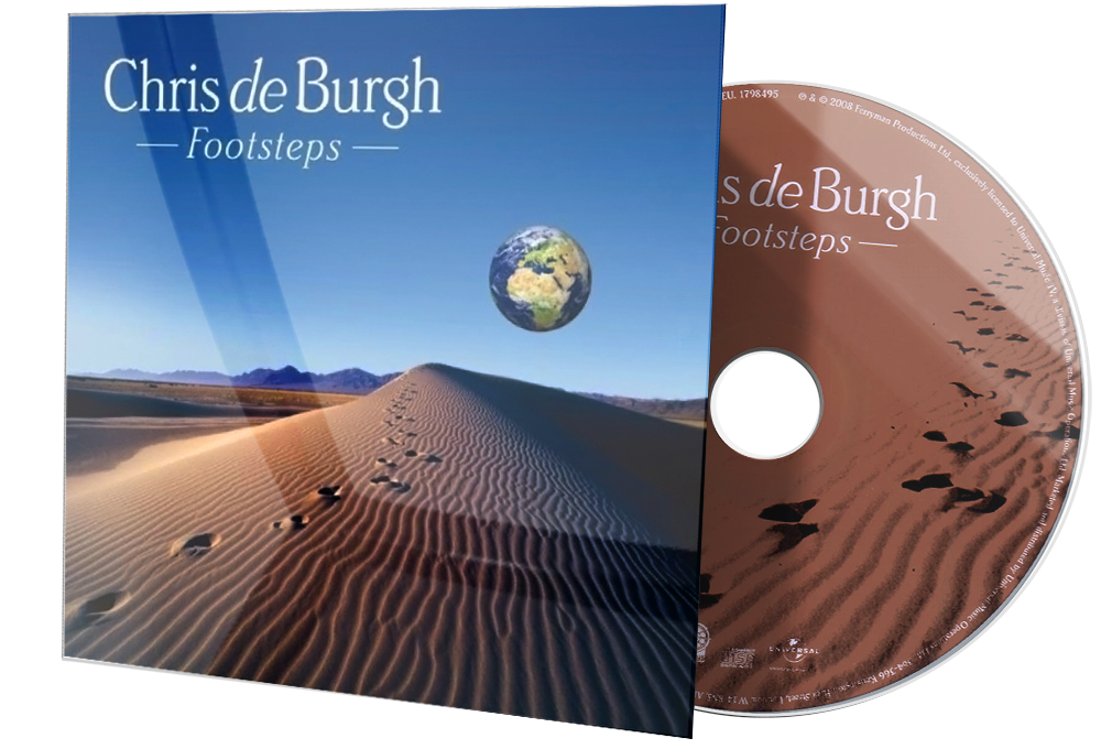 Footsteps is the 17th studio album from Ireland-based singer/songwriter Chris de Burgh. De Burgh handpicked 13 songs that have influenced him throughout his career, as well as two songs especially written for the album. Recording live in just eight days, De Burgh tackled classics by great songwriters, including Lennon and McCartney, Bob Dylan, and Pete Seeger.