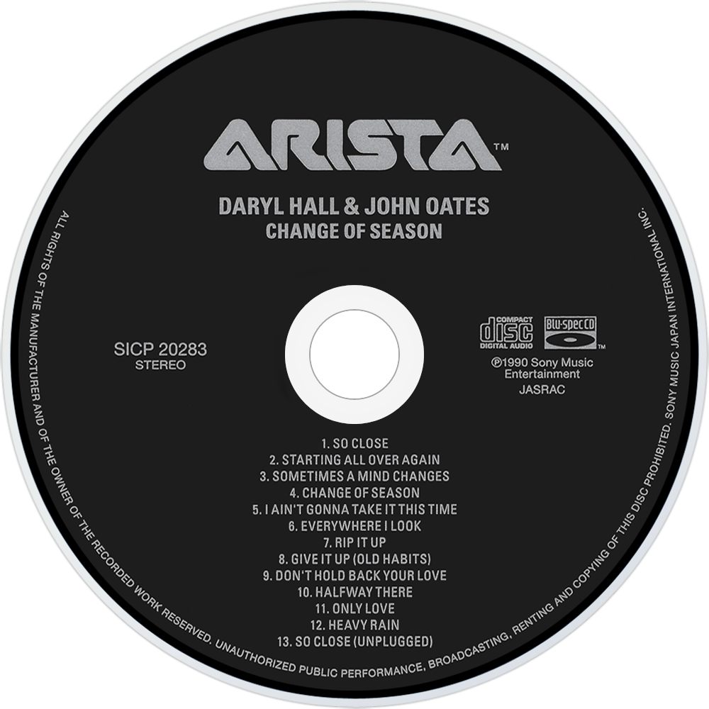 Change of Season is the fourteenth studio album from Daryl Hall & John Oates, released in 1990. The lead single "So Close" was co-written with Jon Bon Jovi and Danny Kortchmar, and hit a high of #11 on the Billboard Hot 100. It was the second and final album for Arista. They signed with Arista before the release of Big Bam Boom while they were still commercially potent.