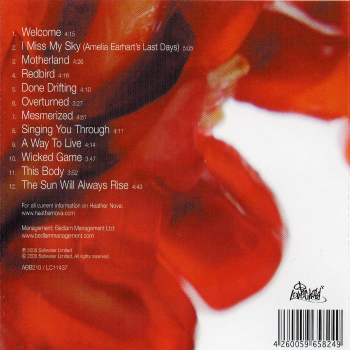 Redbird is Heather Nova's eighth album, released on August 30, 2005. The album includes a cover of Chris Isaak's "Wicked Game". The first track, "Welcome", was also released in 2005 as a single in Europe. "Welcome" also appeared on the U.S./Canadian release of South. The album was produced by Nova's husband and long term producer Felix Tod, except for "Welcome" which was produced by The Matrix.