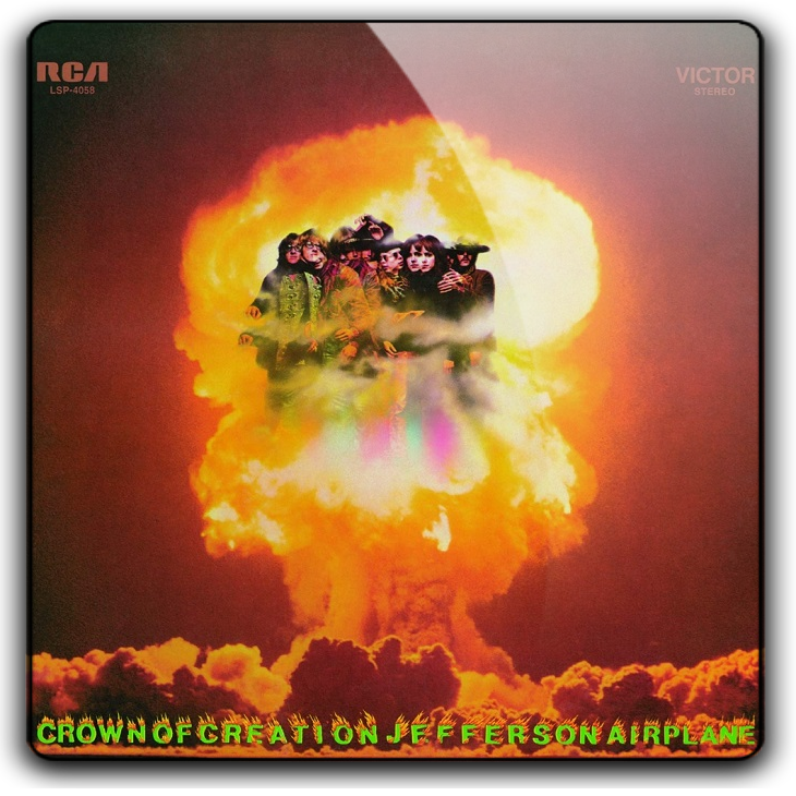 Crown of Creation was released in 1968 and is the fourth album by the San Francisco rock band Jefferson Airplane, released as RCA Victor LSP-4058 (stereo). A mono version was released only to radio in the US (as LPM-4058), but was released commercially in other countries. This was the last Jefferson Airplane album to be released in mono. In addition, although the cover features the newer "modern" RCA Victor logos, initial stereo pressings and all mono pressings were on the black "Nipper" label (instead of the orange label associated with those logos). The album peaked at number 6 on the album charts and was eventually certified gold. The David Crosby-penned "Triad" is the only track not composed by an Airplane member, except that the lyrics to the title song are based on lines from John Wyndham's novel The Chrysalids) - unattributed, but with his permission. "Triad" was previously rejected for release by Crosby's group The Byrds as being too risqué.