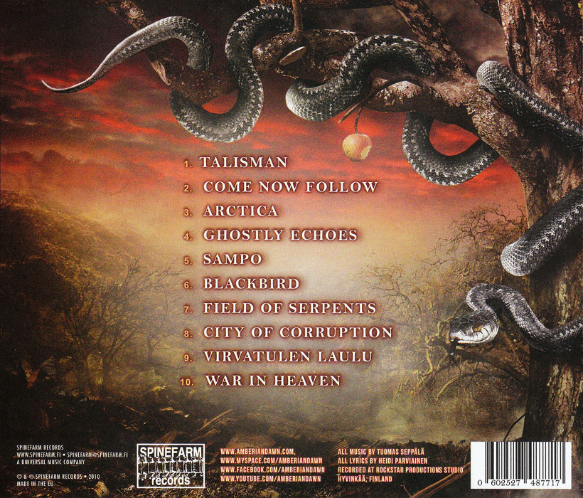 Album Description Available in: End of Eden is the third studio album by Amberian Dawn, and the first released on Spinefarm Records, previous albums having been released on KHY Suomen Musiikki. The album was released on October 20, 2010, but was preceded by its online single Arctica on August 23.