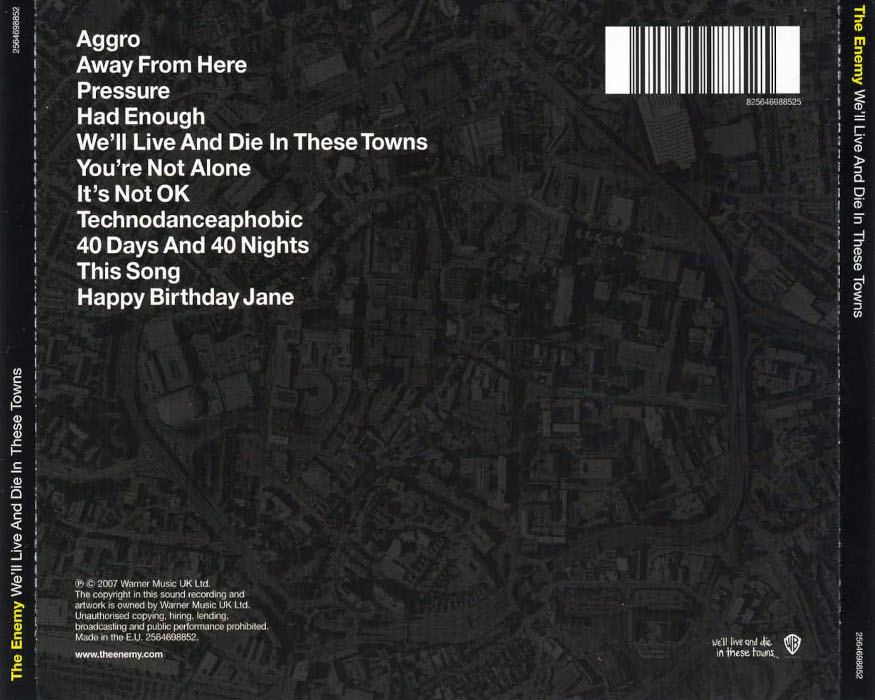 The Enemy hail from Coventry, home of 2-Tone stars the Specials and the Selecter, but this young trio takes its retro cues instead from the bright and shiny mod pop of the Jam circa All Mod Cons and Setting Sons, adding more than a little Brit-pop vintage swagger à la the Stone Roses and Oasis. Their debut album, We'll Live and Die in These Towns, is isn't an unworthy addition to this long and respectable lineage, but at the same time, The Enemy are one of those bands with the unmistakable whiff of hype about them. Their initial pre-album singles were released on the Stiff Records label, the first new releases on that imprint since it had been shuttered 20 years beforehand, but following that buzz- and cred-building move, they were shifted over to Warner Bros., current holder of the Stiff insignia. Fully seven of this album's 11 tracks have been released as singles (the two best songs on the album, "Had Enough" and "Away from Here," were deserved Top Ten hits in the U.K.), a level of promotional overkill rarely seen since the days of Moby Grape, and the "controversies" that were circulated by the band and label's press agents -- feuds with popular disc jockeys, an incident where the group was banned from a festival, reportedly after setting fire to its trailer -- feel like a deliberate positioning of the relatively mild-mannered band as the new bad boys of rock & roll. (A stint opening for the superannuated Rolling Stones at their 2007 U.K. tour dates has an equally contrived "passing of the torch" feel.) The contrivance and falsity of the hype around the band shouldn't affect the music, but unfortunately, it does, highlighting the false notes in singer/songwriter Tom Clarke's tales of urban anomie, which ring less true than those of, say, Arctic Monkeys' Alex Turner (and, crucially, lack his sardonic wit) and pointing out how very much he's copying late-'70s Paul Weller. The title track is an especially blatant bit of musical hero worship. On its own merits, We'll Live and Die in These Towns is a lightweight but enjoyable bit of laddish rock & roll, but heard in the context of the almost overwhelming hype that surrounded its release, the album simply doesn't stack up to the claims made on its behalf.
