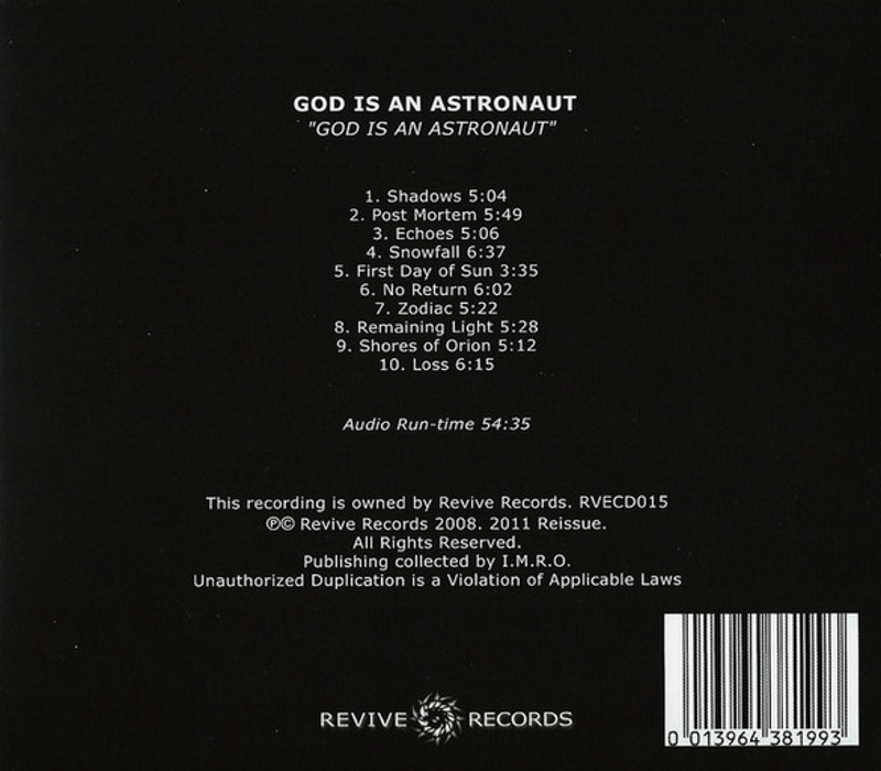 God Is an Astronaut is the self-titled fourth studio album by Irish post-rock band God Is an Astronaut and was released on November 7, 2008. The band announced the album through their MySpace blog in October 2008. The single "No Return" was released as download-only via their website in late December, 2007. The album art is an original painting by Dave King, titled 'Phoenix Affect Icy November'.