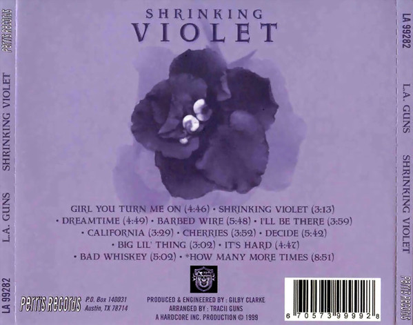 Shrinking Violet is the sixth studio album by glam metal band L.A. Guns, first released on June 1, 1999, through Perris Records, and is the only L.A. Guns album with singer Jizzy Pearl. The album was reissued, with bonus tracks and new artwork, on May 24, 2010, through Favored Nations. The album was produced by former Guns N' Roses guitarist Gilby Clarke who also provided additional guitars on the track "Dreamtime".