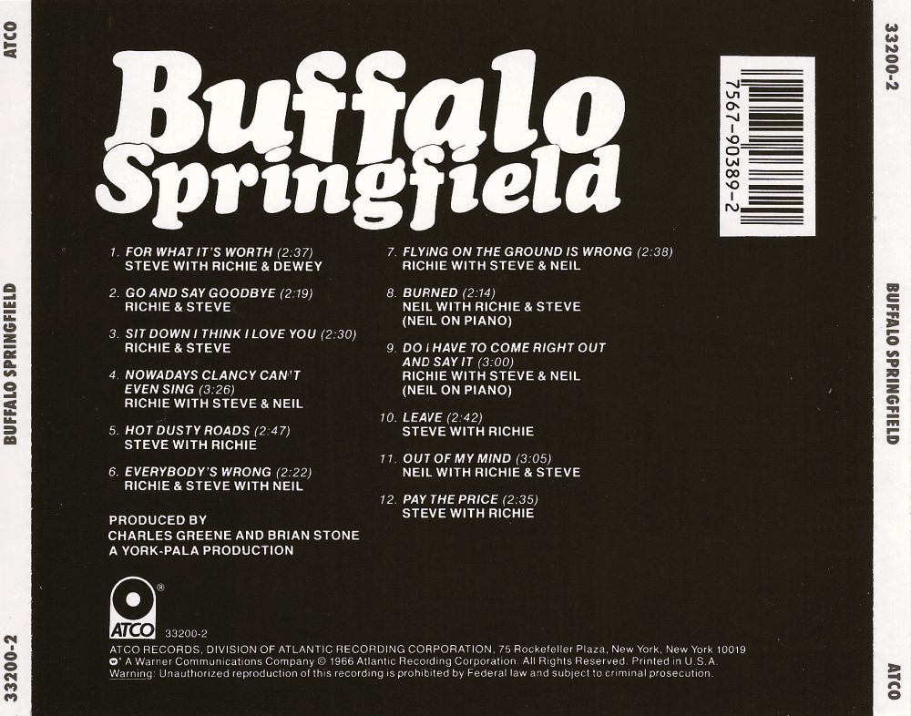 Buffalo Springfield is the self-titled debut album by folk rock band Buffalo Springfield, released in late 1966. It was originally released in both mono and stereo versions as Atco (SD) 33-200, but when the single "For What It's Worth" became a hit, the album was re-released as Atco (SD) 33-200A adding it but dropping "Baby Don't Scold Me". "Baby Don't Scold Me" has never been reissued in stereo: all CD releases feature only the mono mix. The band was generally unhappy with the sound of the album and felt that it didn't reflect the intensity of their live shows.