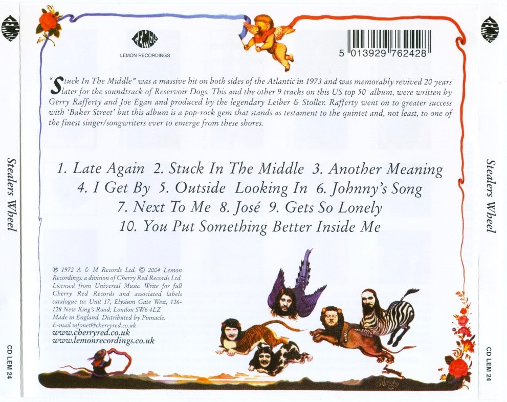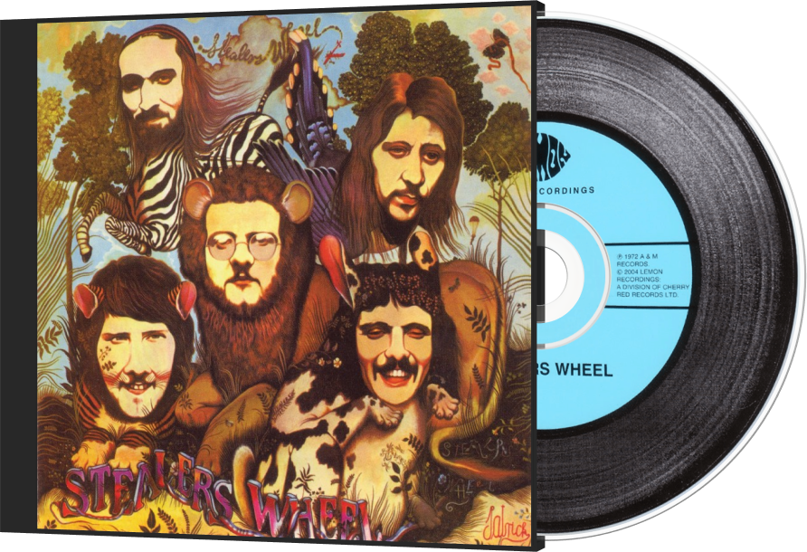 Encased in a classy sleeve painted by Scottish playwright John "Patrick" Byrne, the first LP from the tumultuous Stealers Wheel is a debonair affair comprised of the kind of accomplished and polished pub pop for which impetus Gerry Rafferty would become known as he subsequently rode out the decade on the sublime radio single "Baker Street ." Rafferty released his first solo slab, Can I Have My Money Back? (the title already showing signs of unrest) in 1971, and brought amigo Joe Egan from those sessions to the princely proceeding here. Worthy musical moments abound, all forever overshadowed by the clever corporate-snub "Stuck in the Middle With You" which branded the duo a one-hit wonder when the track took on a life of its own. Sadly, the song also foreshadowed the premature end of Stealers Wheel, and Rafferty and Egan continued to document the personal and professional turmoil of their short time together throughout their respective solo careers, even re-recording some of these early jewels. And though only Rafferty's star continued to rise, Egan harbors considerable talent as well, shining brightly on his Rubber Soul-influenced tapestry "Another Meaning"; however, he keeps bland company with Bad Company with the dumb thud of "I Get By." Meanwhile, Rafferty creates one of those oh-so-cosmic '70s grooves for "Outside Looking In," before being unfortunately caught in one of those oh-so-abrupt '70s fades at the end of side one. This vibe wouldn't be broken so drastically on CD, but for now, and seemingly forever, the platter must be flipped for the unique "Johnny's Song" wherein mountain-rock breaks surround Rafferty's wry life observations. Hidden nugget "Next to Me" extols mellow melancholy meditations exclusive to the West Coast and the Have a Nice Day Decade. Closing pastorale "You Put Something Better Inside of Me" inspired renditions by Ted Neeley and Raphael Ravenscroft. Ultimately, this very solid outing casts a somber shadow because of unfulfilled expectations. And any record this carefully crafted doesn't deserve to languish in the bins of obscurity, but such seems to be the fate of Stealers Wheel. At least the band will always be remembered through the cinematic revival of that supreme FM staple "Stuck in the Middle With You." [This album was re-released by Cherry Red in 2004.]