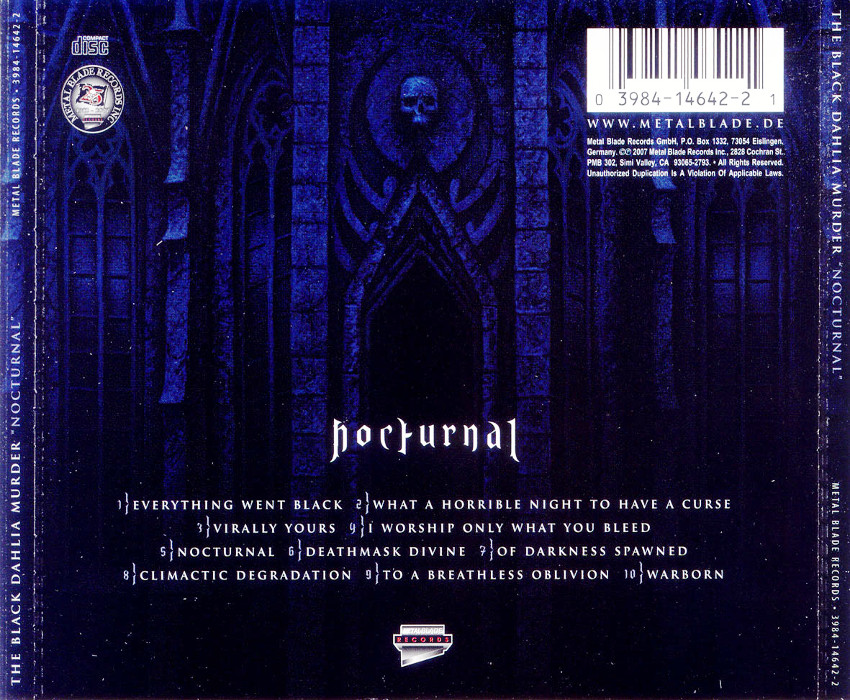 Nocturnal is the third studio album by American death metal band The Black Dahlia Murder. It was released through Metal Blade on September 18, 2007 and is the band's first album to feature bassist Bart Williams, who replaced Dave Lock, and drummer Shannon Lucas. It is also the last album to feature longtime guitarist John Kempainen.