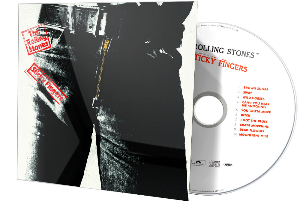 Sticky Fingers contiene los sonidos clásicos de rock and roll, country, blues y rhythm and blues que la agrupación inglesa había empleado en sus trabajos anteriores, pero se diferencia de estos al incluir letras más oscuras que hacen referencia a la esclavitud, el sexo interracial y el uso de drogas. La portada fue diseñada por el conocido líder del movimiento pop-art Andy Warhol; además, se incluye por primera vez el logotipo de los Stones de la lengua y los labios, realizado por John Pasche.