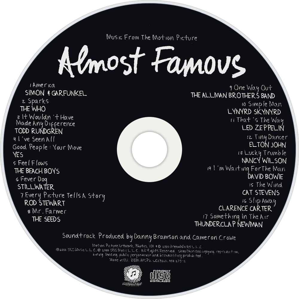In his film Almost Famous, director Cameron Crowe Jerry Maguire, Singles explores a subject near and dear to his heart: the rock 'n' roll of the '70s and the journalists who covered it. Crowe, a onetime rock journalist, has also assembled a soundtrack boasting an astonishing array of heavy hitters, including the Who "Sparks", Lynyrd Skynyrd "Simple Man", and Yes "I've Seen All Good People". Apparently Crowe was able to secure the Led Zeppelin track "That's the Way" -- quite a coup, as it's Zep's first soundtrack appearance ever -- by drawing on his own deep roots in the music industry. Even though the track listing features all big names, Crowe's known passion for music compelled him to dig deeper for material, so he treats listeners to David Bowie's live cover of the Velvet Underground's "I'm Waiting for the Man" and the Beach Boys' 1971 psychedelic nugget "Feel Flows." Also included is a Donovan-like instrumental from former Heart member -- and Crowe's wife -- Nancy Wilson "Mr. Trumble" and "Fever Dog," a cock-rock stomper by Stillwater, the fictional band at the center of Almost Famous. With this soundtrack, Crowe once again merges his love for rock and the big screen into a seamless work that honors the past while adding to its legacy.