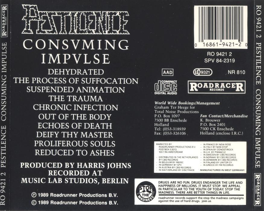 Consuming Impulse (stylized as Consvming Impvlse) is the second album by Dutch death metal band Pestilence, released in 1989. While retaining some of the thrash metal elements from its predecessor Malleus Maleficarum (1988), Consuming Impulse saw the band progress further towards the traditional death metal genre with progressive influences; this can be seen as one of the earliest examples of technical death metal, a subgenre that would be used and expanded on Pestilence's subsequent albums. Consuming Impulse was also their first release with then-new guitarist Patrick Uterwijk, and their last one to feature bassist and vocalist Martin van Drunen.