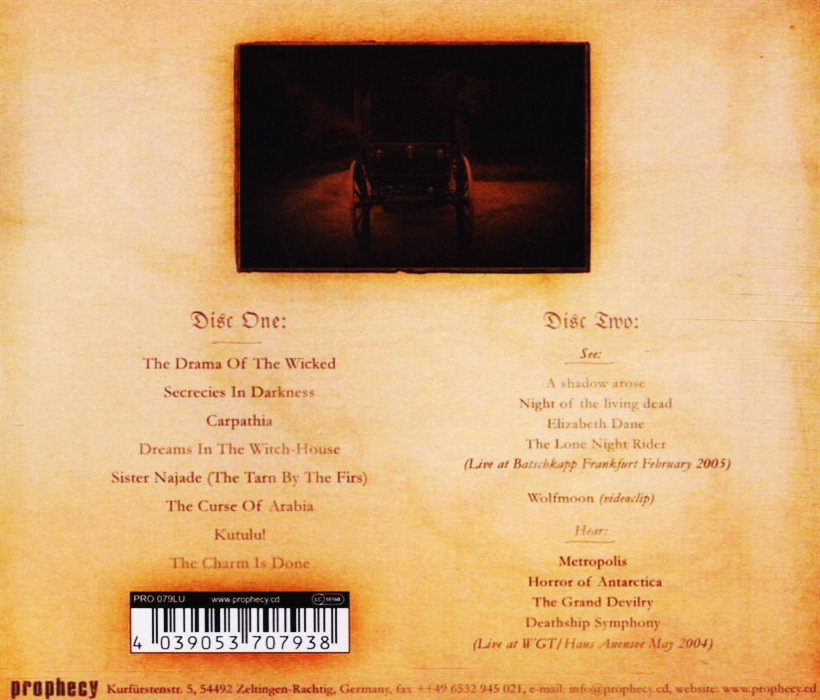 Album Description Available in: "Carpathia: A Dramatic Poem" is the second studio album by German gothic metal band The Vision Bleak, released on 29 August 2005 through Prophecy Productions. A digipak edition containing four additional live bonus tracks was also released.