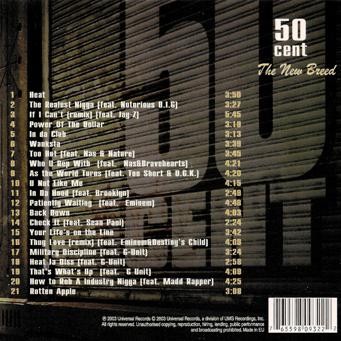 50 Cent: The New Breed is a 2003 documentary by rapper 50 Cent. It stars 50 Cent, Eminem, Dr. Dre, Lloyd Banks, Tony Yayo, Obie Trice, D12 and others, distributed by Interscope Records. 50 Cent: The New Breed is directed and produced by Don Robinson and Damon Johnson.
