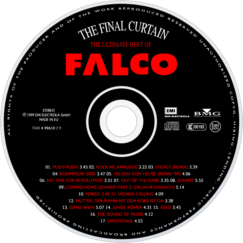 No matter what way you look at it, The Final Curtain is a bit of a morbid title for a posthumous hits collection, but even with that burden, the compilation lives up to its billing as The Ultimate Best of Falco. Since this is a German release, it has a number of songs that were Eurohits but will be unfamiliar to American listeners. Consequently, it will seem like overkill to many casual fans, but for the dedicated, this an exhaustive overview of his career that borders on definitive.