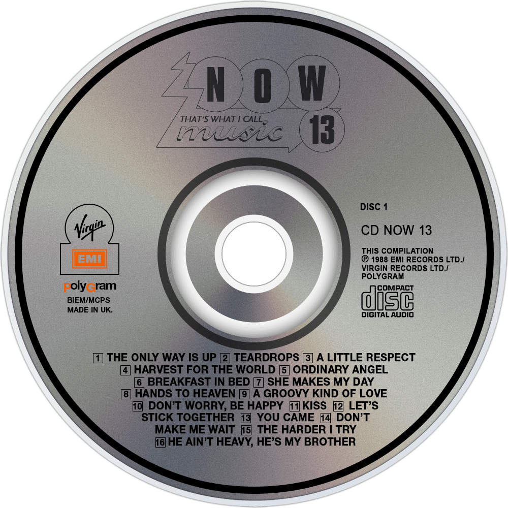 Now That's What I Call Music XIII or Now 13 was released in 1988. The album is the 13th edition of the (UK) Now series. It was released on vinyl, audio cassette & CD formats. It reached number 1 on the UK Albums Chart for four weeks. This would be the last compilation album to be number 1 on the chart, as the UK Compilation Chart was created in January 1989 due to the dominance of compilations in the albums chart over the previous few years, and subsequent Now! albums would chart there instead.