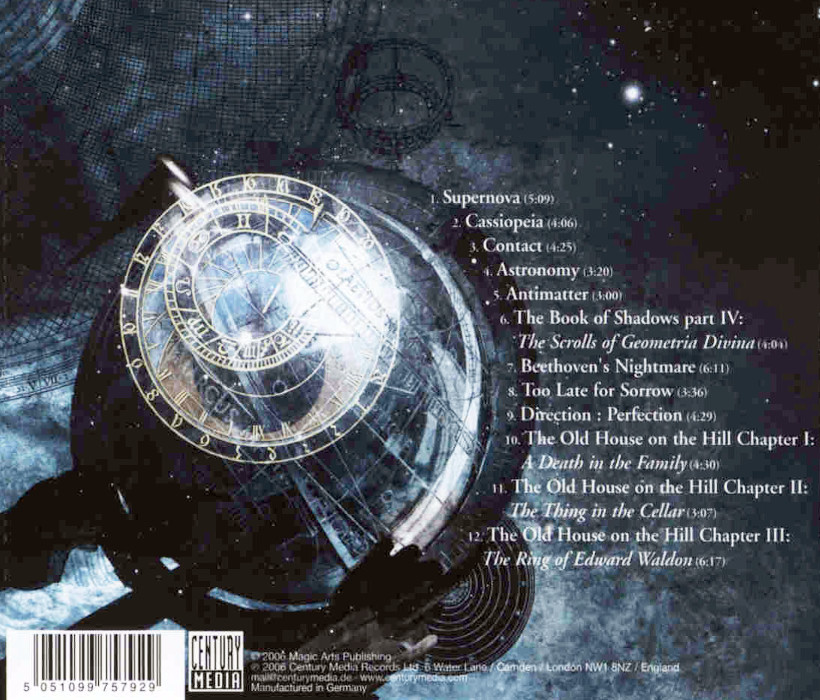 The album sees the continuation of "The Book Of Shadows" from their last album Starfall with track six "Part IV: The Scrolls Of Geometria Divina".