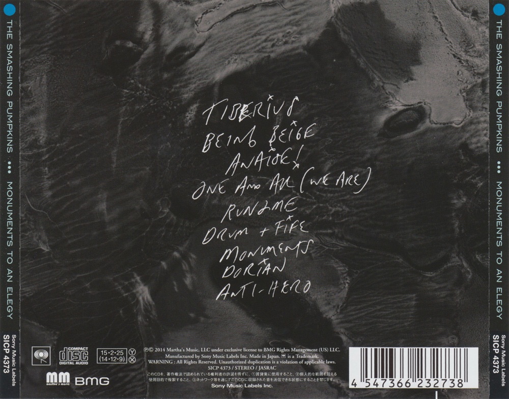 Monuments to an Elegy is the ninth studio album by American alternative rock band the Smashing Pumpkins, released on December 9, 2014 on the Martha's Music label. Band leader Billy Corgan has noted that—similar to the band's previous release, Oceania—the album is a part of the ongoing project, Teargarden by Kaleidyscope.