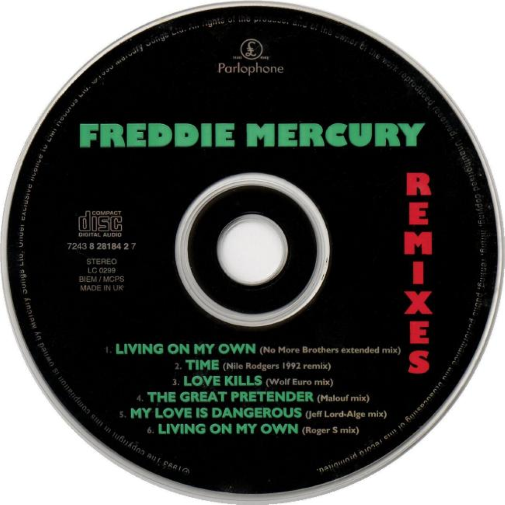 This CD was released after FM's death, so naturally you won't find anything new here. Also, four out of the six tracks remixed (Time, My Love is Dangerous, The Great Pretender, and Love Kills) can be found on Hollywood records release, "The Great Pretender". I, personally, like these remixed versions much less than the original ones; originals can be found on "The Freddie Mercury Album" and "Mr. Bad Guy" (if you can EVER find this CD, which has been out of print for ages, despite people's high demand). But, I still think it is a MUST-HAVE for any fan. I just LOVE this CD, because it is a high quality European release and because the two versions of "Living On My Own" are the best ones! I am crazy about this song and I've heard about ten official versions, but the ones from this CD are simply the best. So, don't think that it is too high a price to pay for remixes, just go out and BUY IT! Why wait for american music industry to release British music at the right time? In case of Freddie Mercury, it is already too late as it is...