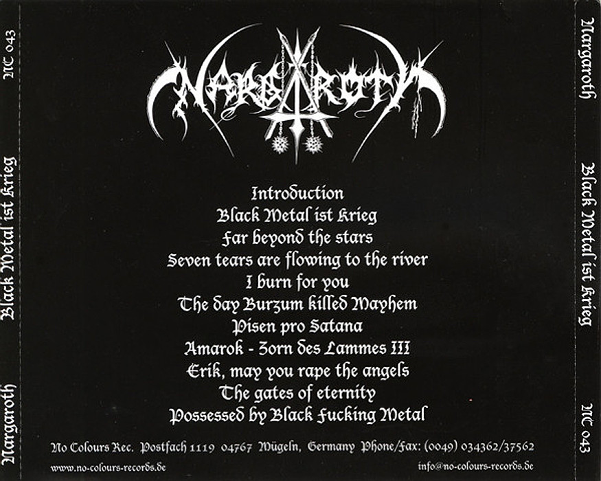 Black Metal ist Krieg (German for "Black Metal Is War") is the third full-length album by the black metal band Nargaroth, released in 2001 on the 	No Colours Records label.