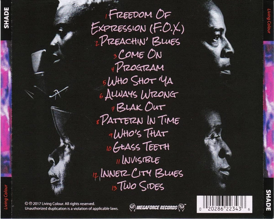 "Shade" is the sixth studio album by American rock band Living Colour, released on September 8, 2017 through Megaforce Records. It is their first studio album in eight years, following The Chair in the Doorway (2009).
