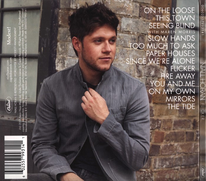 "Flicker" is the solo debut studio album by Irish singer and songwriter Niall Horan. It was released on 20 October 2017, through Neon Haze Music and Capitol Records.